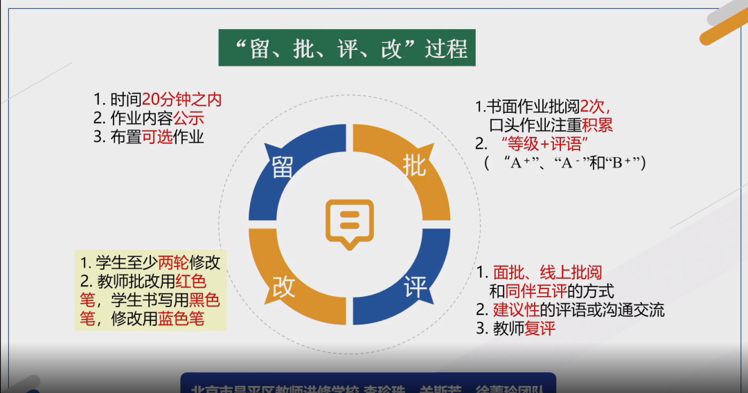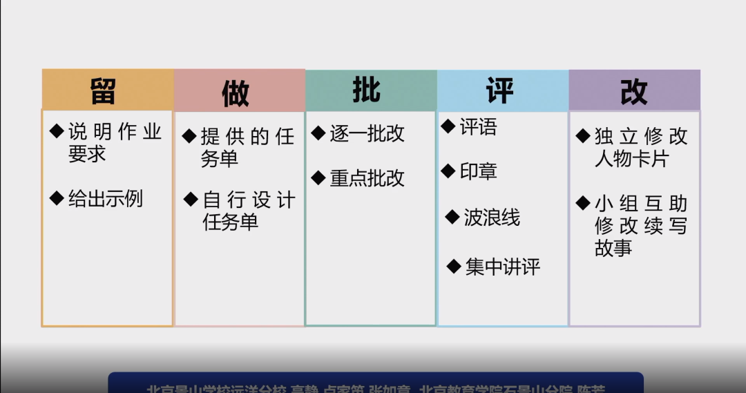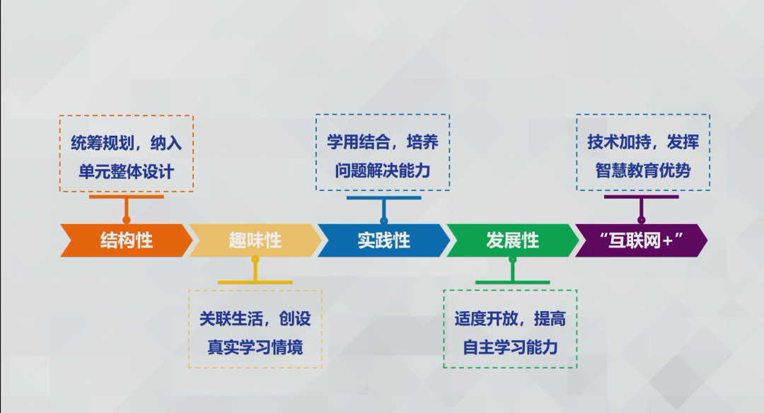 各位专家老师对课堂中与孩子身心发展相适应的学习活动设计、语言情境的创设进行了肯定,也提出引导学生关注真实生活和关注单元主题的重要性,引导学生通过语篇表达自己观点,关注主题外延的价值引导;写作教学更加关注写作内容的结构化和前后内容的逻辑衔接。