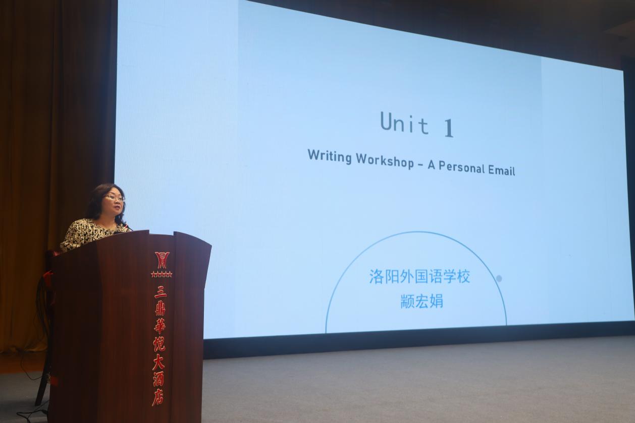 来自洛阳外国语学校的颛红娟老师以必修一Unit 1 Writing Workshop—A Personal Email为例,为老师们展示了一节学用结合、教学评一体化的写作课例,并进行了教学设计讲解。