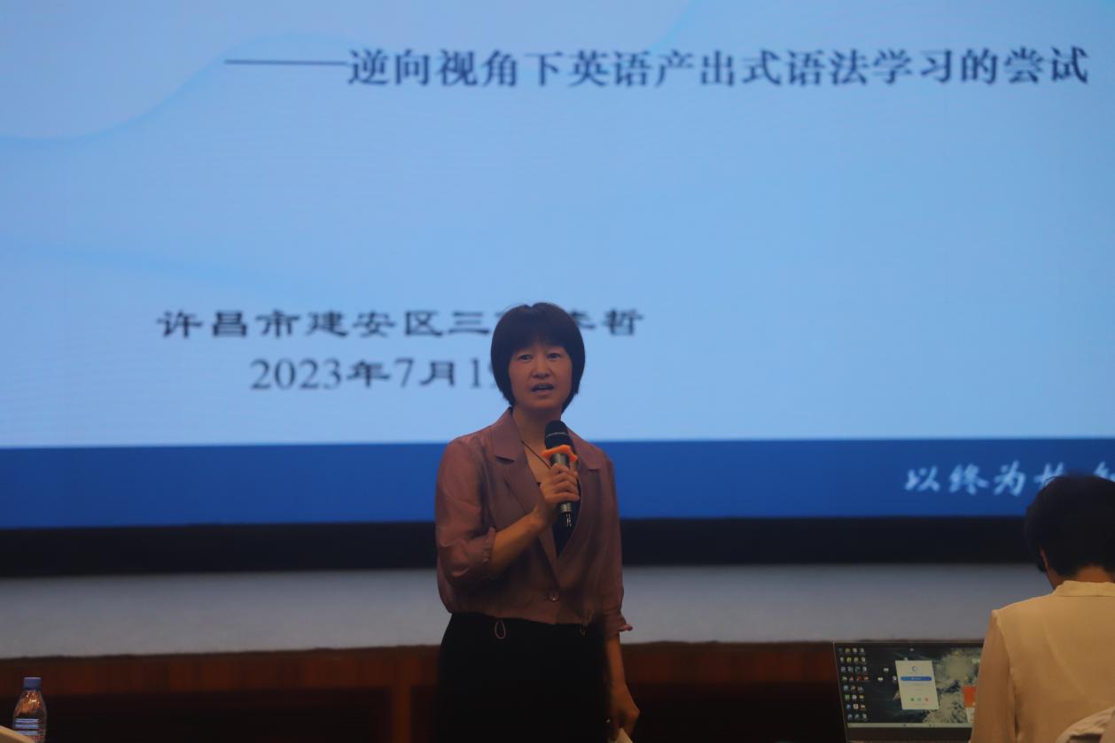 7月19日下午,邓州市基础教育教学研究室高中英语教研员柳禹主持会议,并以一首原创小诗点燃了会场老师们的听课热情。