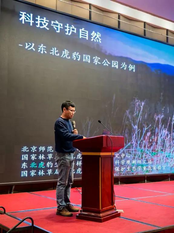 北京师范大学冯利民教授做《科技守护自然——以东北虎豹国家公园为例》的讲座。