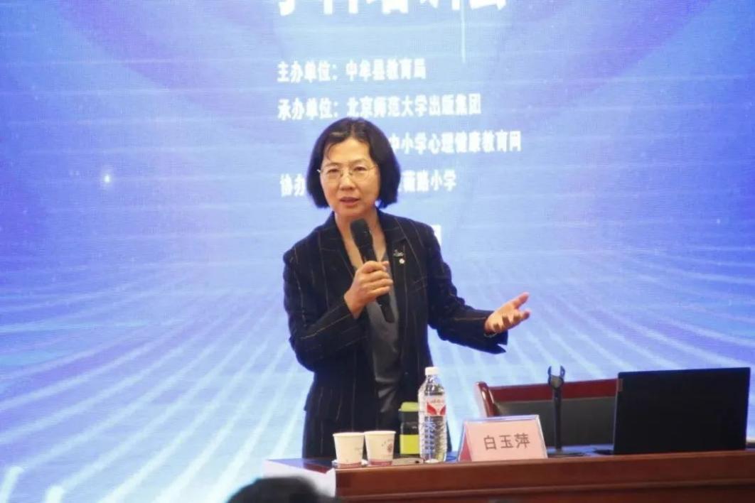 开幕式结束后,北京教育科学研究院德育研究中心白玉萍教授为大家带来了精彩的主题讲座——《心理健康教育活动课的设计与评价》。白教授围绕中小学校心理健康课程开设、课堂教学、教材解读等专题,结合《中小学心理健康教育指导纲要》对北师大版心理健康教材的课程设计理念及内容进行了解读,并结合实例,从心理课程的价值与目标讲解出发,对心理课程主题的确定、设计与实施、课程评价等方面进行讲述,指导教师们结合本校学生实际情况,创造性地设计心理健康教育课程。