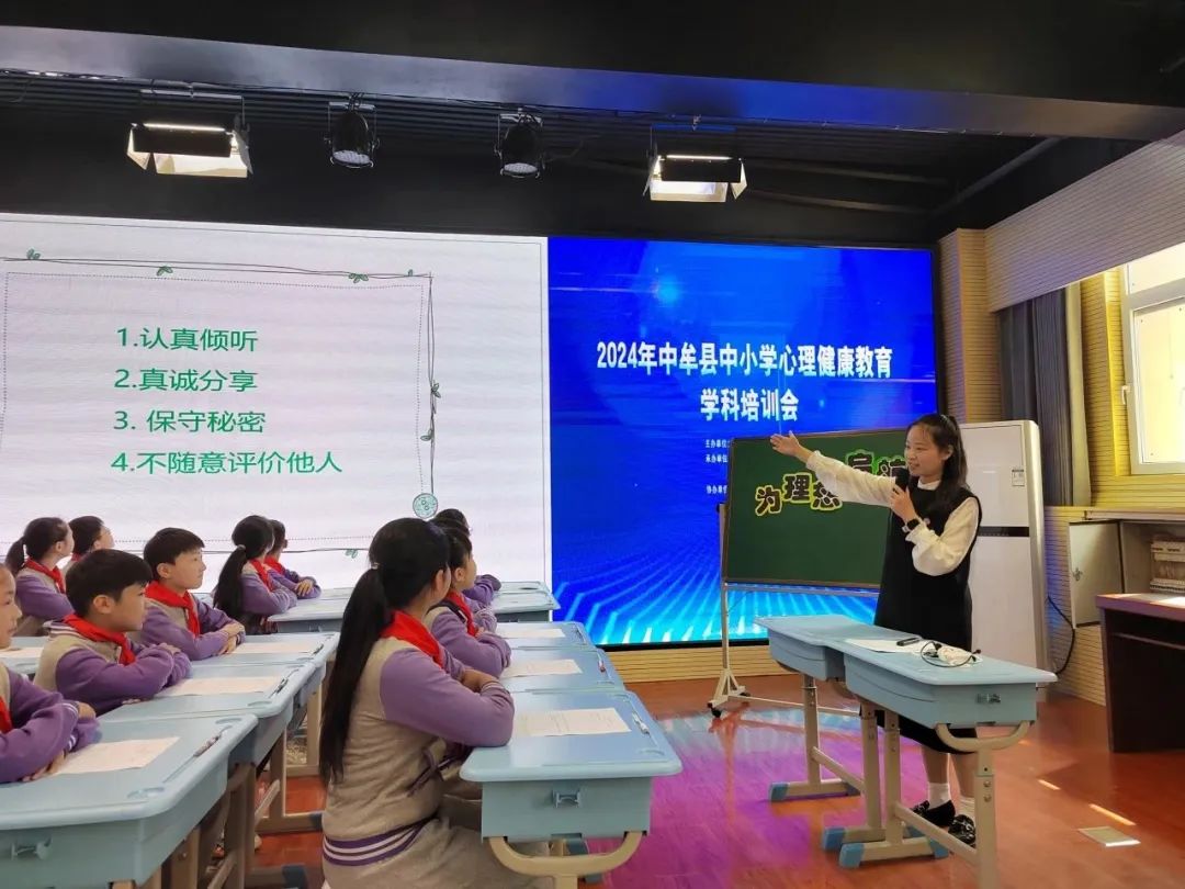 为全面贯彻落实教育部及河南省心理健康教育工作有关文件精神,充分发挥心理健康教育学科的育人功能,保障心理健康教育教材的科学使用,2024年4月16日,由中牟县教育局、北京师范大学出版集团、河南省中小学心理健康教育网共同举办的“中牟县中小学心理健康教育学科培训会”在中牟县紫薇路小学顺利举办。