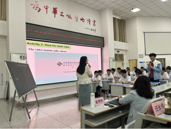 戚云老师则挑战了视听课型,以北师大版教材Unit 5 Viewing部分为素材,以生动有趣的导入和环环相扣的教学设计,带领学生体验了一场别开生面的英语视听课堂。戚老师注重激发学生的学习兴趣,帮助学生克服视听障碍,赢得了现场教师的广泛好评。