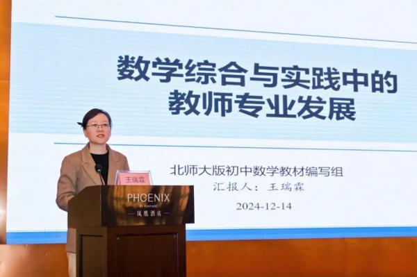 2.马复教授介绍了初中数学新版教材经历的修订、实践论证、送审等过程,并详细介绍了编写组为支持教材建设和教师发展所开展的教材实践与教师发展“一体化主题研修”活动。