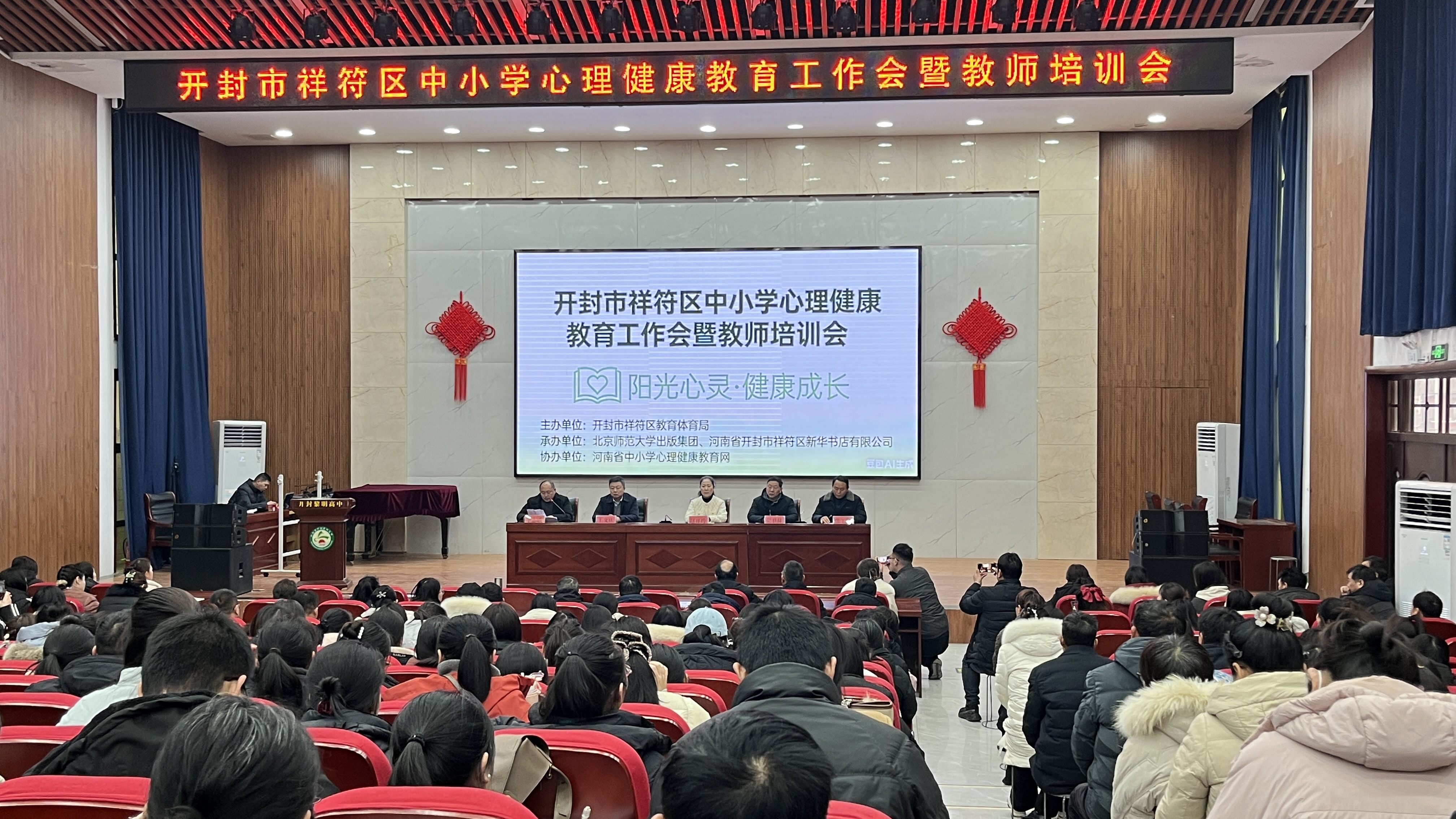 为深入落实立德树人根本任务,全面提升区域中小学心理健康教育质量,2026 年 1 月 14 日上午,由开封市祥符区教育体育局主办,北京师范大学出版集团(以下简称 “北师大出版社”)与祥符区新华书店有限公司联合承办,河南省中小学心理健康教育网协办的 “祥符区中小学心理健康教育工作会暨教师培训会” 在黎明中学报告厅成功举办。全区 500 余名心理健康教育负责人、专兼职教师及班主任代表参加了此次培训。