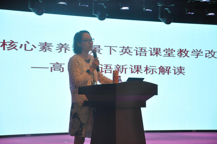 钱小芳教授结合自己的研究成果,带领老师们认真研读必修第一册,阐释了如何在阅读和听说教学中落实“英语学习活动观”。她轻松诙谐地为大家介绍了新教材,尤其是阅读课的实施建议,且随时提问和老师们互动。