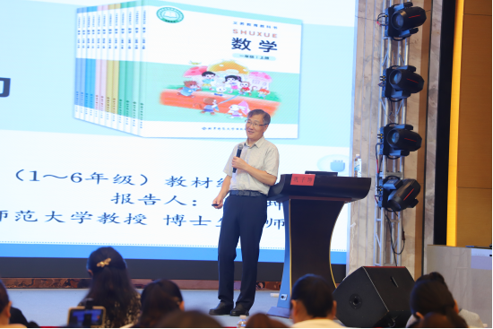 随后,北师大版教师教学用书副总主编、杭州师范大学巩子坤教授带来题为《实施促进学生发展的教学活动》的专题报告。巩教授通过实例分析,引导老师们体悟知识间的结构化与一致性,并解读精彩教学片段,启发教师如何设计促进学生发展的教学活动。