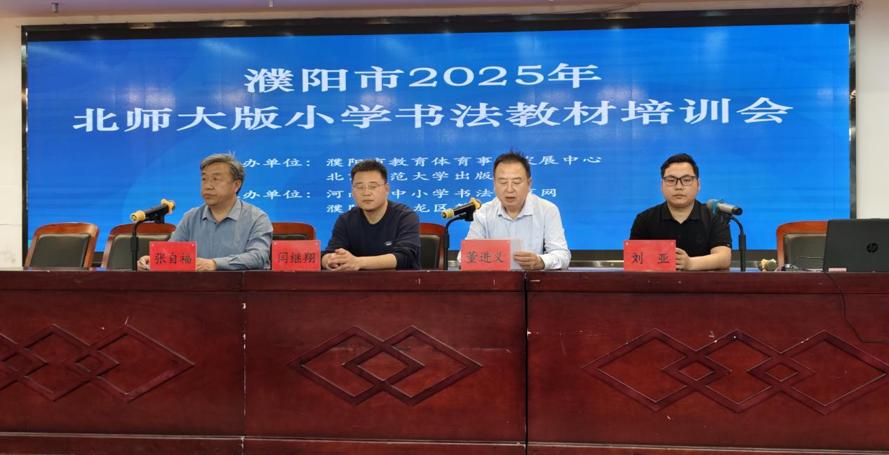 为进一步提升书法教育质量,推动书法教深度发展,4月17日,由濮阳市教育体育事业发展中心和北京师范大学出版社主办、濮阳市华龙区第一中学和河南省中小学书法教育网承办的“濮阳市2025年北师大版小学书法教材培训会”在濮阳市华龙区第一中学举行。北师大出版社社派专家、首都师范大学书法博士、清华大学艺术理论博士后、北京城市学院书法硕士研究生导师闫继翔,北师大出版社河南服务中心书法负责人、河南省中小学书法教育网总编辑、象虹书法教育组组长刘亚,濮阳市教育体育事业发展中心副主任董进义及全市200余名小学书法教师、青年骨干教师参加此次培训会,活动由濮阳市教育体育事业发展中心义务教育教研室主任张自福主持。