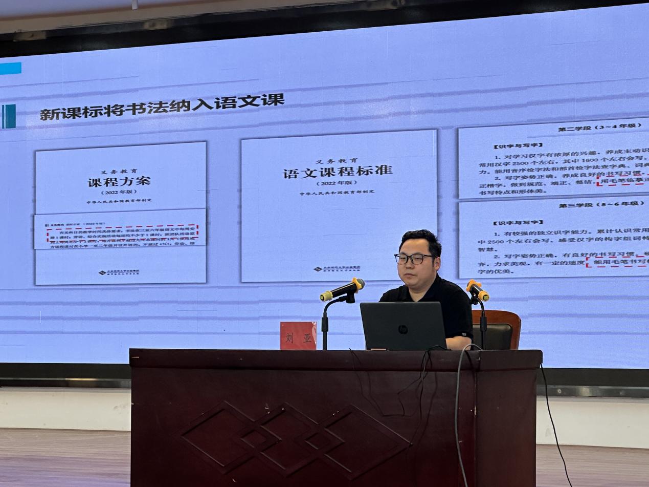 刘亚老师以“书法数字化教育”为主题,解析了2022年新课标的要求以及2024年教育部下发的“教育部办公厅关于进一步加强中小学规范汉字书写教育的通知”,介绍了我省数字化教育的发展现状,就书法数字化教学给予了一种切实可行的解决办法,解决了老师在备课、示范、讲解和评价的问题。