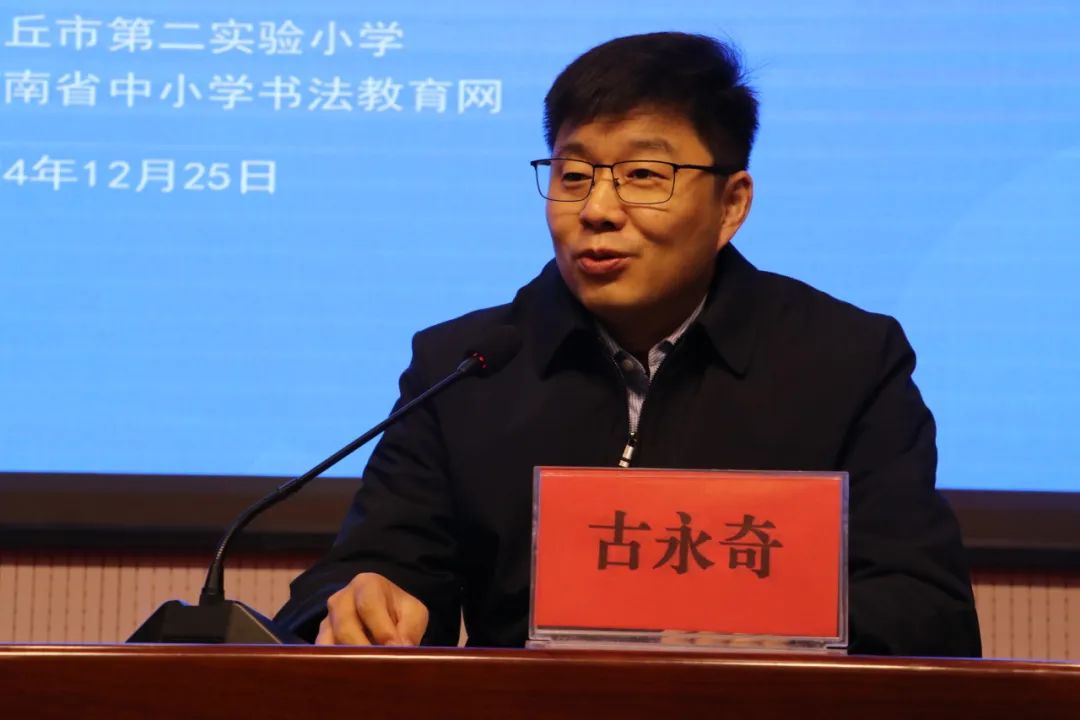 古永奇书记发表了热情洋溢的致辞,他表示书法是中华民族传统艺术的重要组成部分,也是展现中华文化魅力的重要窗口,希望通过此次培训,能加强参训教师对书法教材更深入的认识,让更多师生能够接触、了解并参与到这一传统艺术文化的传播中来。