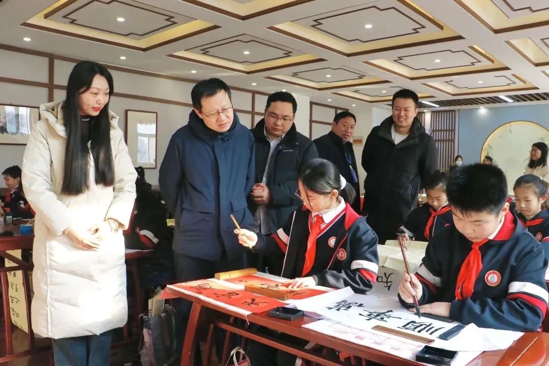 26日上午,首先对北师大版书法教材教育教学基地校——商丘市第一实验小学进行了授牌仪式,接下来观摩了学校书法开展情况,肯定了学校书法教学的成果,对下一步学校书法教育的发展给予指导。然后对北师大版书法教材教育教学基地校——商丘市第二实验小学进行了观摩,深入一线课堂,了解学校书法教育发展的成果给予了充分肯定和认可,对一线老师提出的相关问题给予解答。