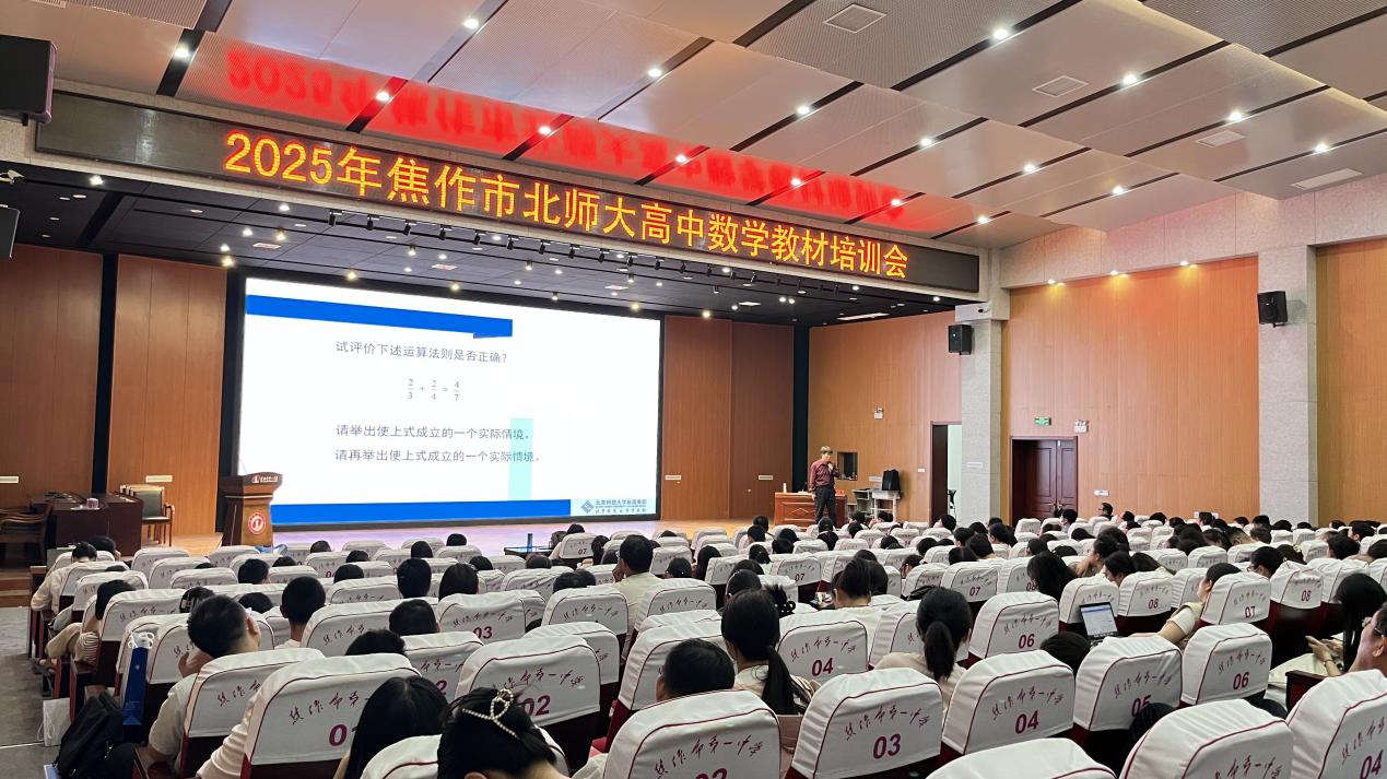 为全面提高高中数学教师专业素养,精准落实新高考新课标新教材对课堂教学的新要求,进一步推进数学课堂教学改革,培育学生创新思维与问题解决能力,实现科学育人的目标,2025年5月16日,北师大版高中数学教材培训活动在焦作市第一中学报告厅隆重举行。